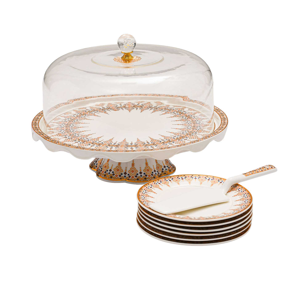 Casa Blu Radiance Cake Stand with Dome and Serving Plates (8pc Set)-Gold Accents