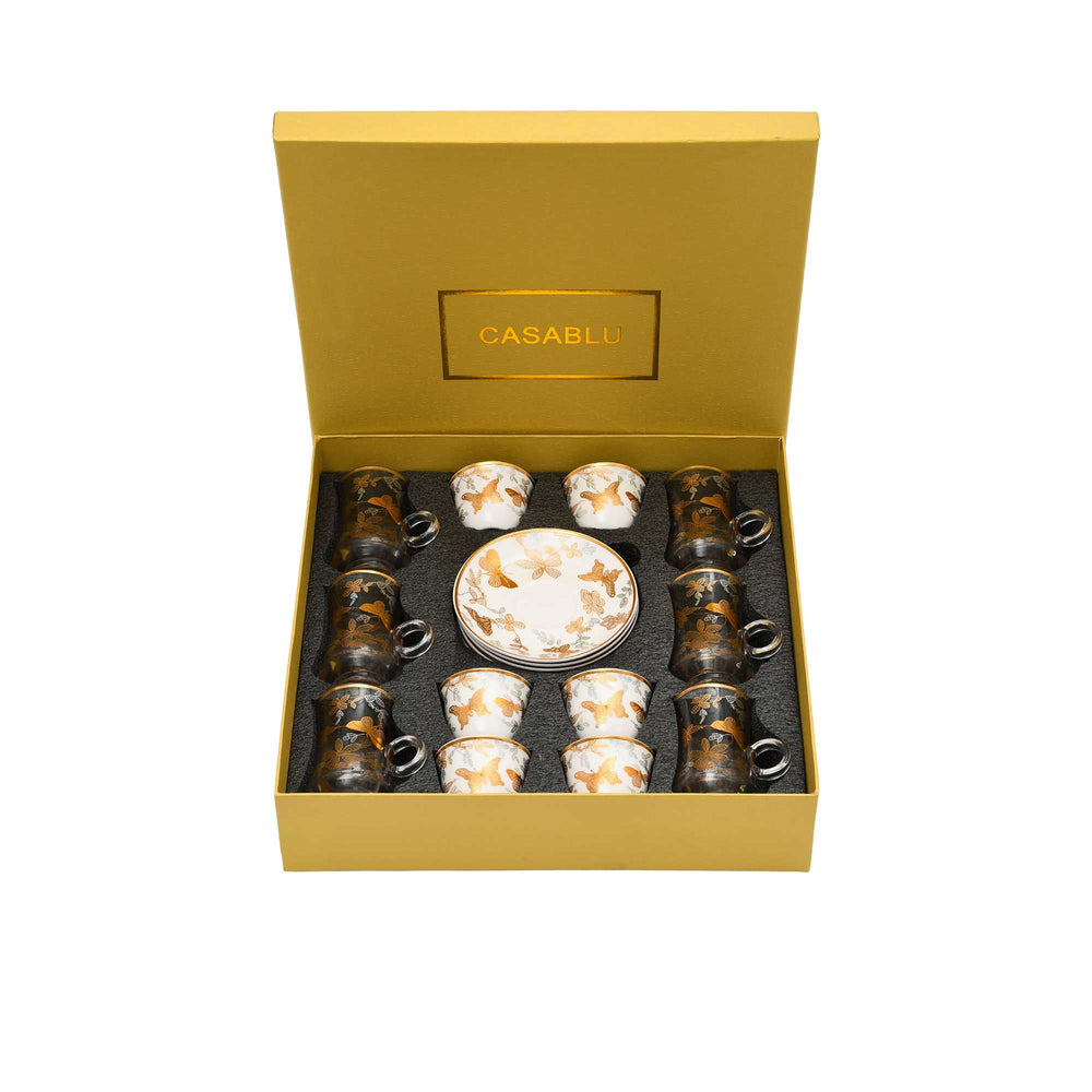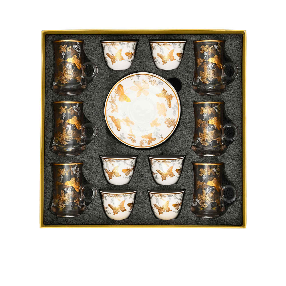Casa Blu Butterfly Tea & Arabic Coffee Set (18pc) - Gold Accents