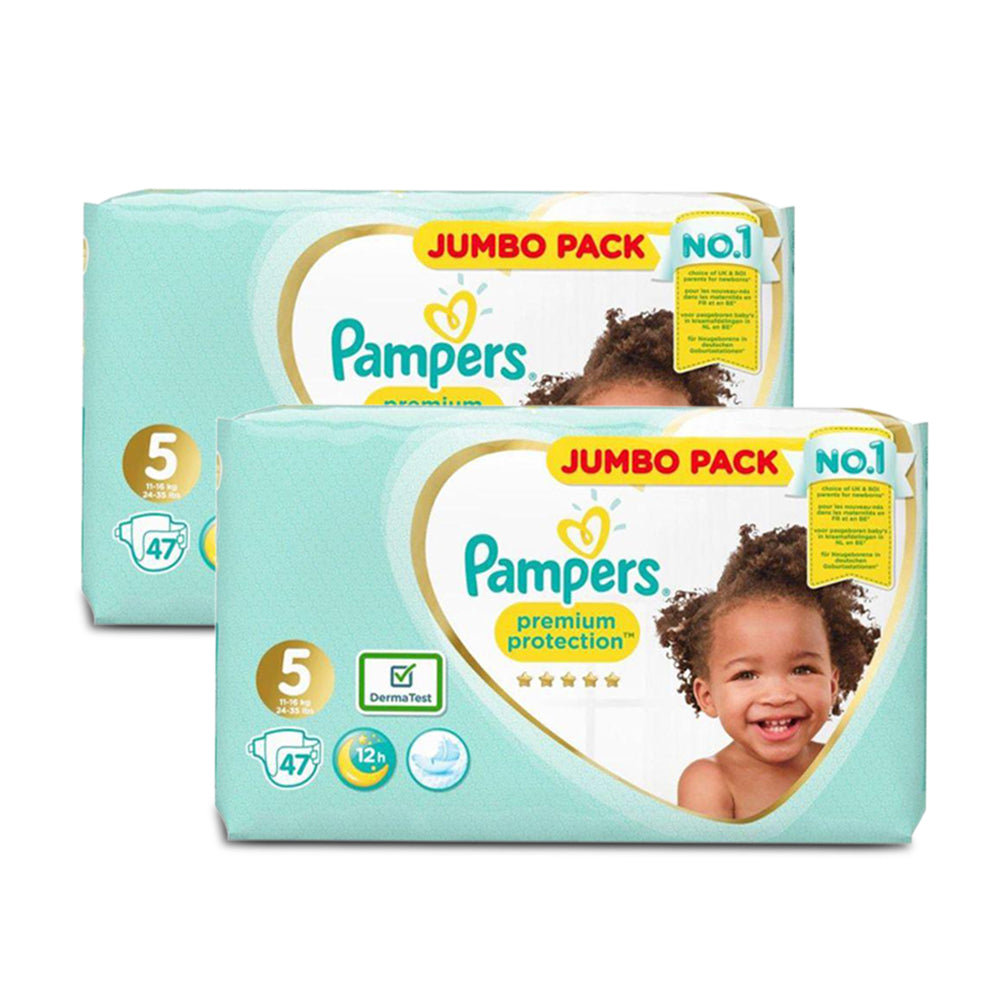 حفاضات بامبرز حماية مميزة مقاس 5 (11-16 كجم) - (47 حفاضة × عبوة من 2 - إجمالي 94 حفاضة)