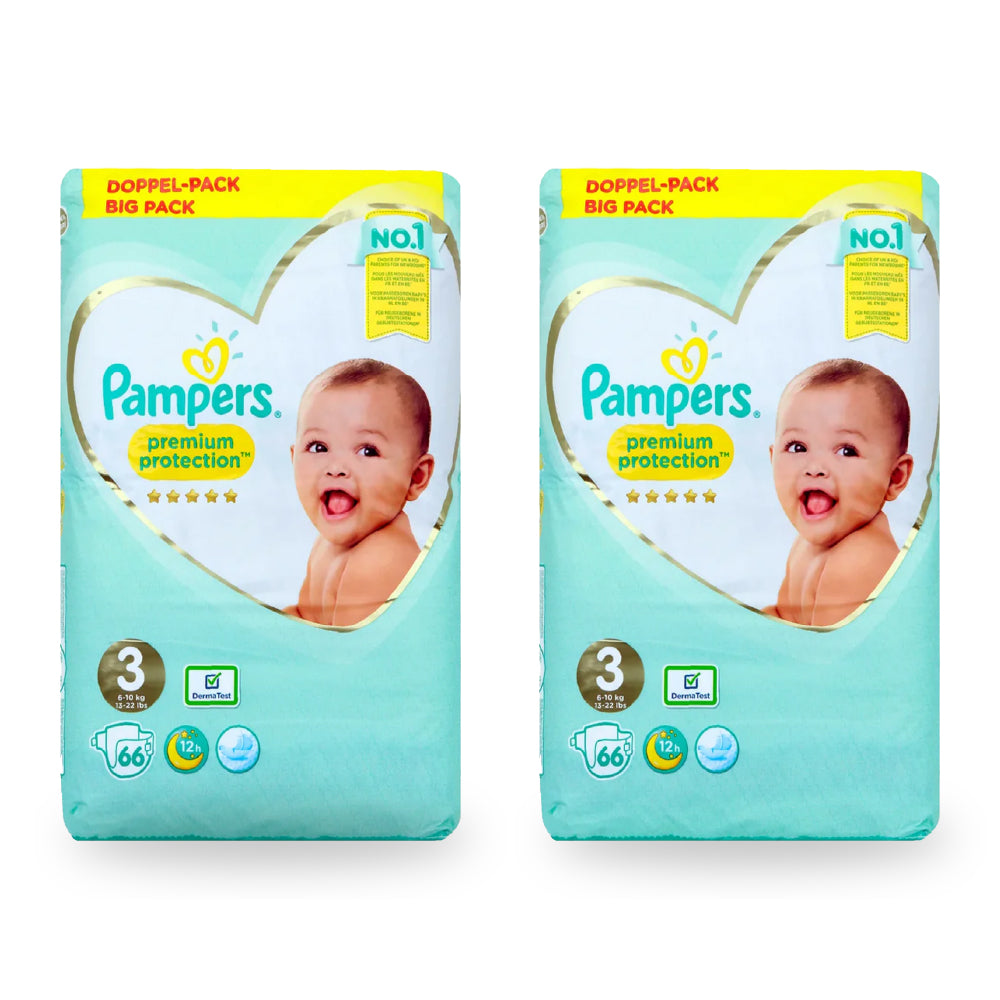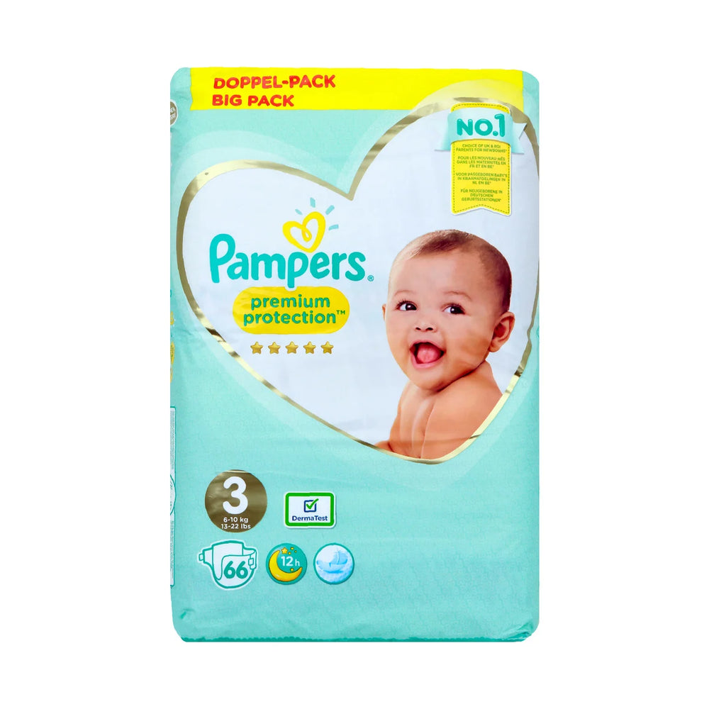 حفاضات بامبرز حماية مميزة مقاس 3 (6-10 كجم) - (66 حفاضة × عبوة من 2 - إجمالي 132 حفاضة)