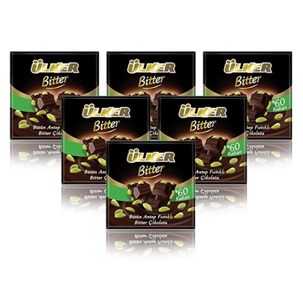 اولكر شوكولاتة مرة مربعة مع الفستق 70غ عادي مجموعة من 6 قطعة