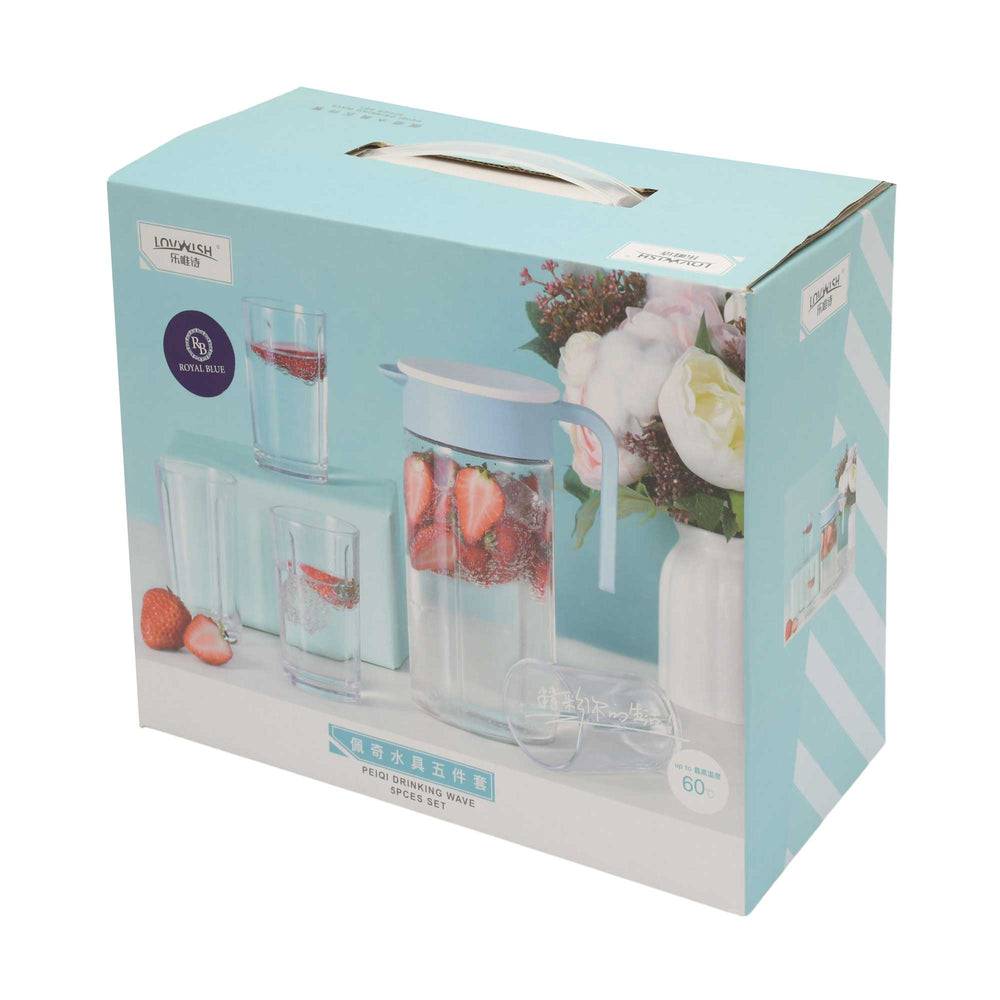 إبريق زجاجي أزرق ملكي سعة 1000 مل مع طقم 4 قطع أكواب سعة 200 مل
