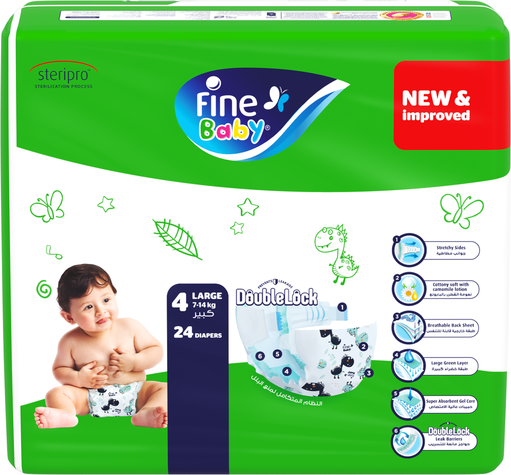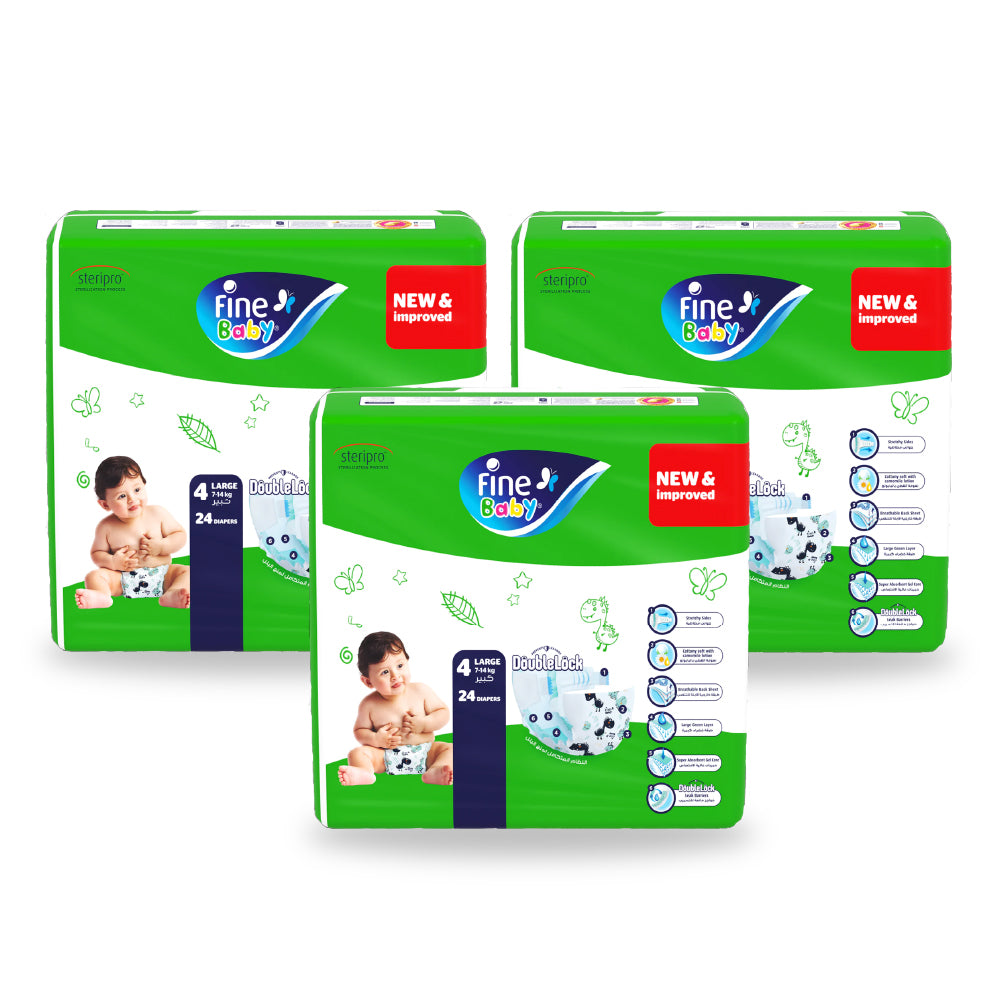 حفاضات فاين بيبي إيكو كبيرة-4 (7-14 كجم) 24 حفاضة (عبوة من 3 قطع)