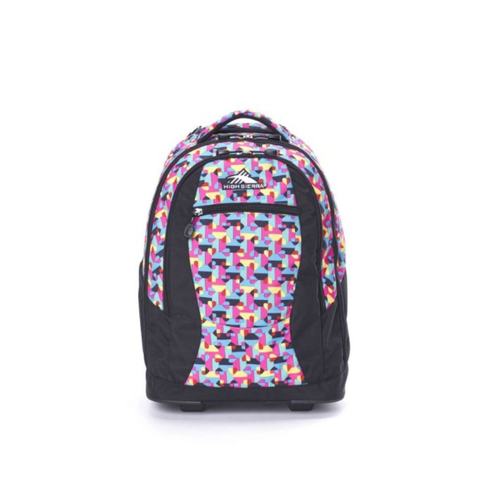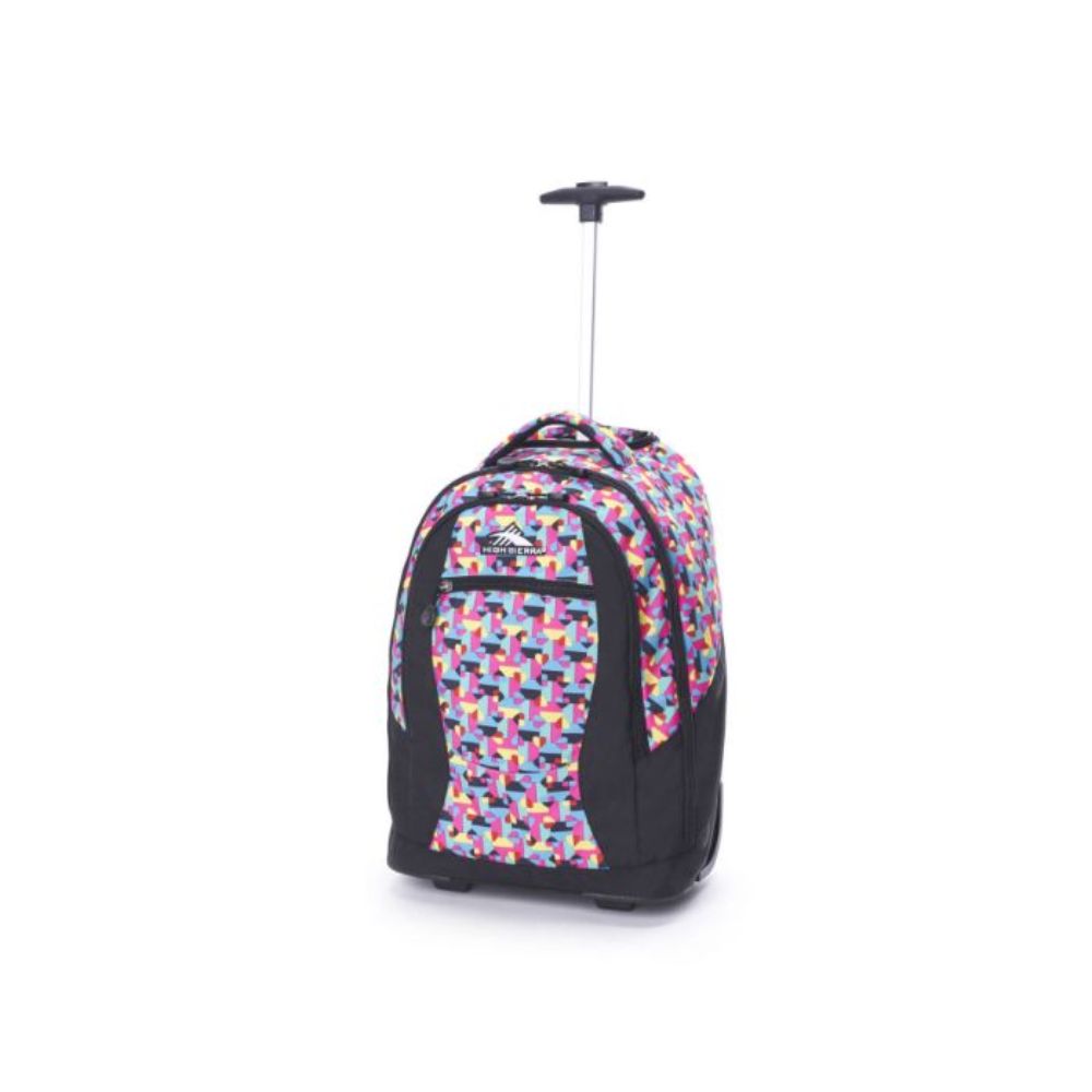 حقيبة الظهر المزودة بعجلات بيضاوية الشكل سوداء اللون مع زركشة نبض القلب من هاي سيرا