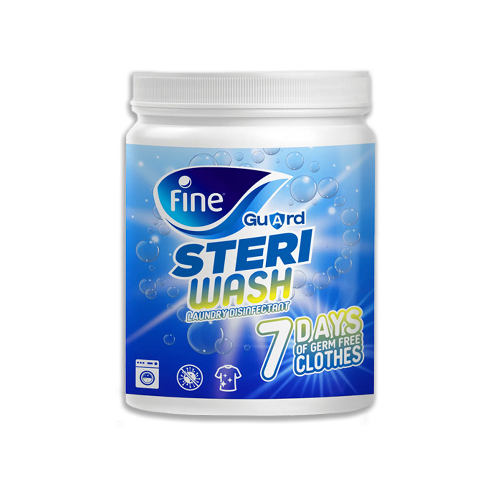 Steriwash ، الغسيل الثوري تطهير الذي يشرب ملابسك بسلطات ذاتية لذاتي! Steriwash هو مطهر الغسيل الوحيد الذي ثبت أنه يحيد 99.9 ٪ من جميع البكتيريا والفيروسات والحفاظ عليها لمدة 7