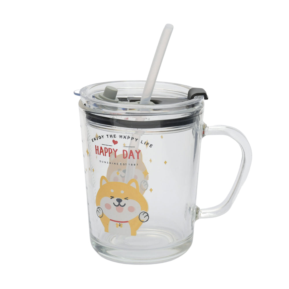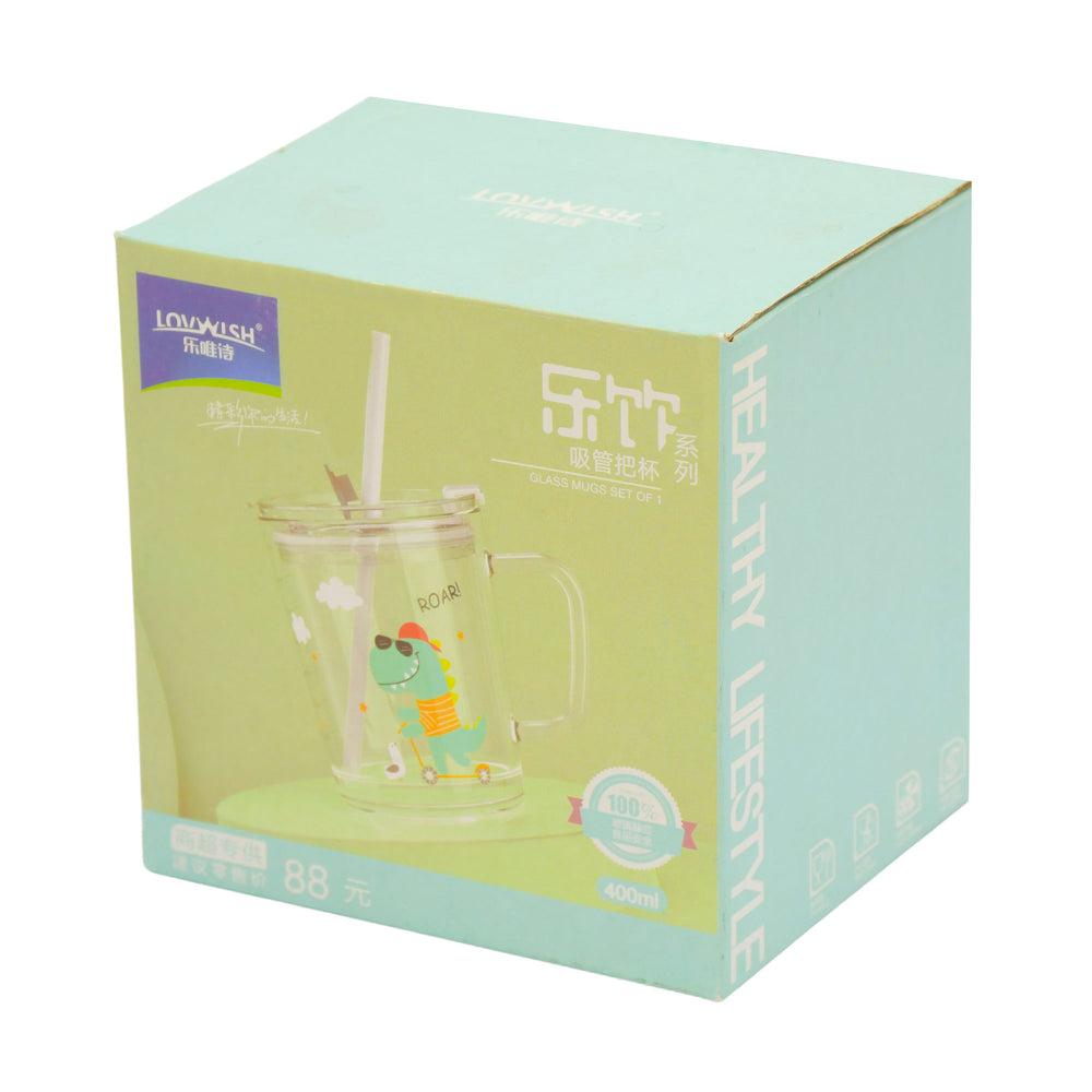 كوب زجاجي أزرق ملكي مع مصاصة 400 مل (عبوة من قطعتين)