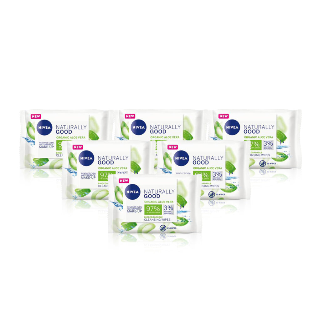 Nivea بشكل طبيعي جيد الألوة فيرا مناديل 25 قطعة (حزمة 6)