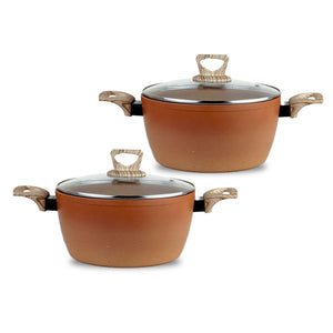 رويال بلو مقلاة تيراكوتا غير لاصقة مطروقة ألومنيوم دائرية مع غطاء زجاجي برتقالي اللون 24 سم (مجموعة مكونة من 2 مقلاة)