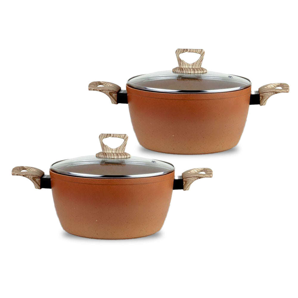 كسرولة ألمنيوم مقاس 24 سم بغطاء زجاجي الحجم: 24 × 12.0 سم سمك: 2.3 / 4.0MM اللمسات النهائية: التدرج الرملي لون طلاء غير لاصقة طلاء رخامي خارجي وألوان طلاء رخامية