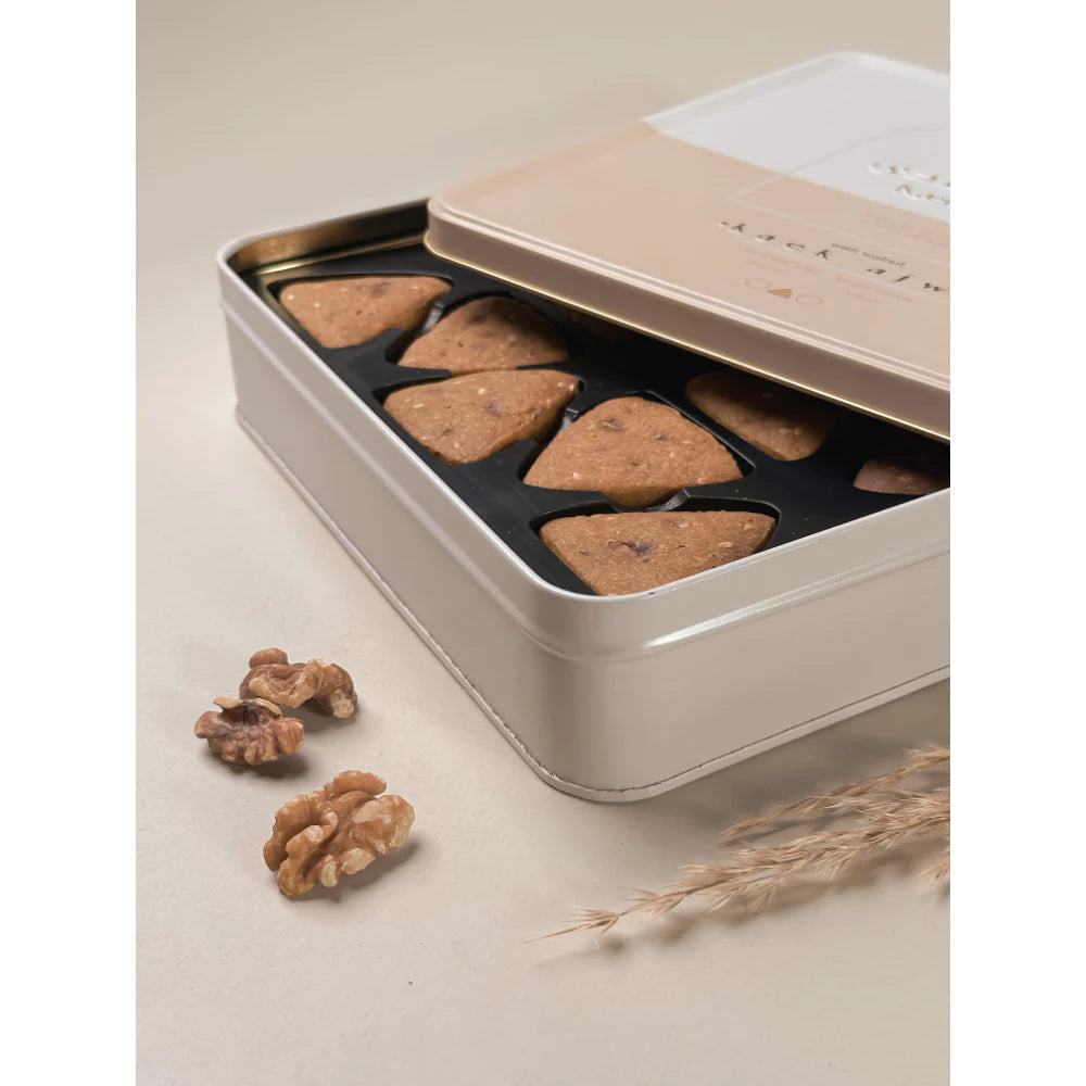 كعكة عجوة بالجوز، خالية من السكر وصديقة للنباتيين، يتم خبزها بالحب والعاطفة باستخدام أفضل المكونات فقط لتحقيق أقصى قدر من المذاق والفوائد الصحية. يضيف الجوز ملمسًا مقرمشًا إلى معجون العجوة، مما يجعل تناوله أكثر متعة، ولأنه طازج، يمكنك أن تكون واثقًا من أنك تحصل على جميع العناصر الغذائية التي يحتاجها جسمك.