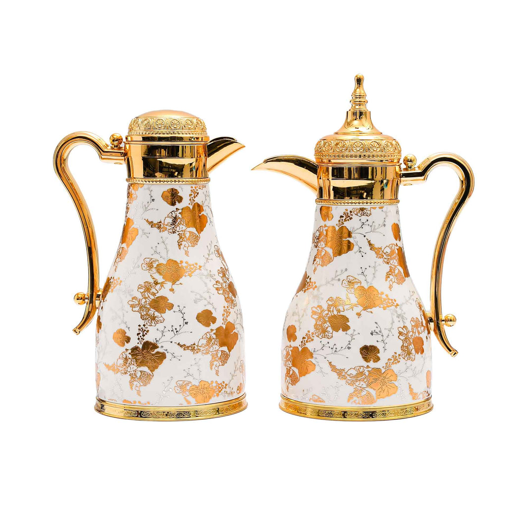 Casa Blu Floral Arabic Coffee Flask Set (2pc) - Gold and Silver Accents
