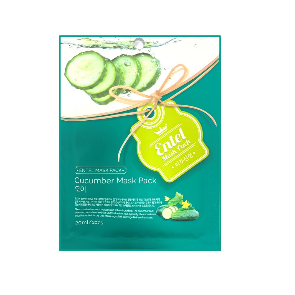 - يحتوي قناع الخيار Entel على خصائص مهدئة ومخففة تقلل بسرعة من التهاب الجلد وتريح البشرة من الآثار الضارة للأشعة فوق البنفسجية.