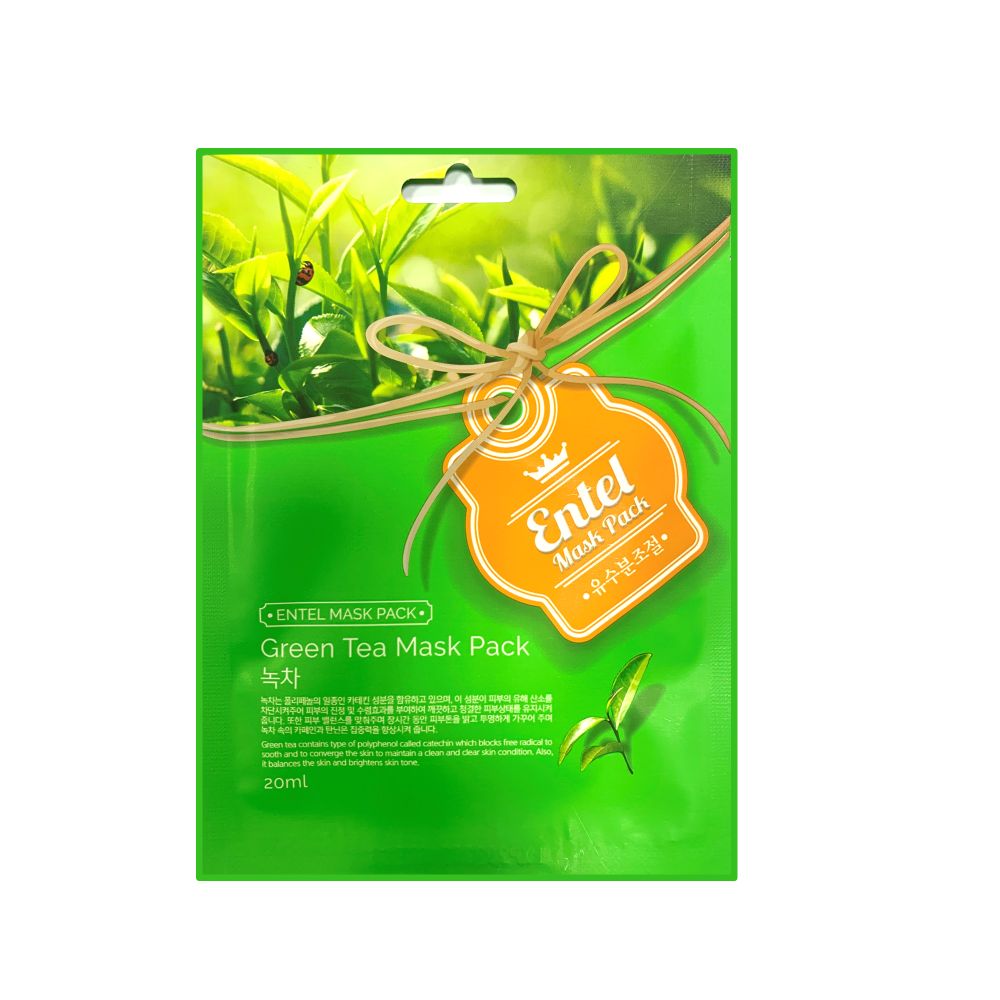 يحتوي قناع الشاي الأخضر Entel على نوع من مادة البوليفينول يسمى كاتشين الذي يقلل من التهيج والاحمرار والتورم. إنه قناع ترطيب مكثف للوجه يمتص في وجهك ويتركك بشرة ناعمة ومرطبة.
