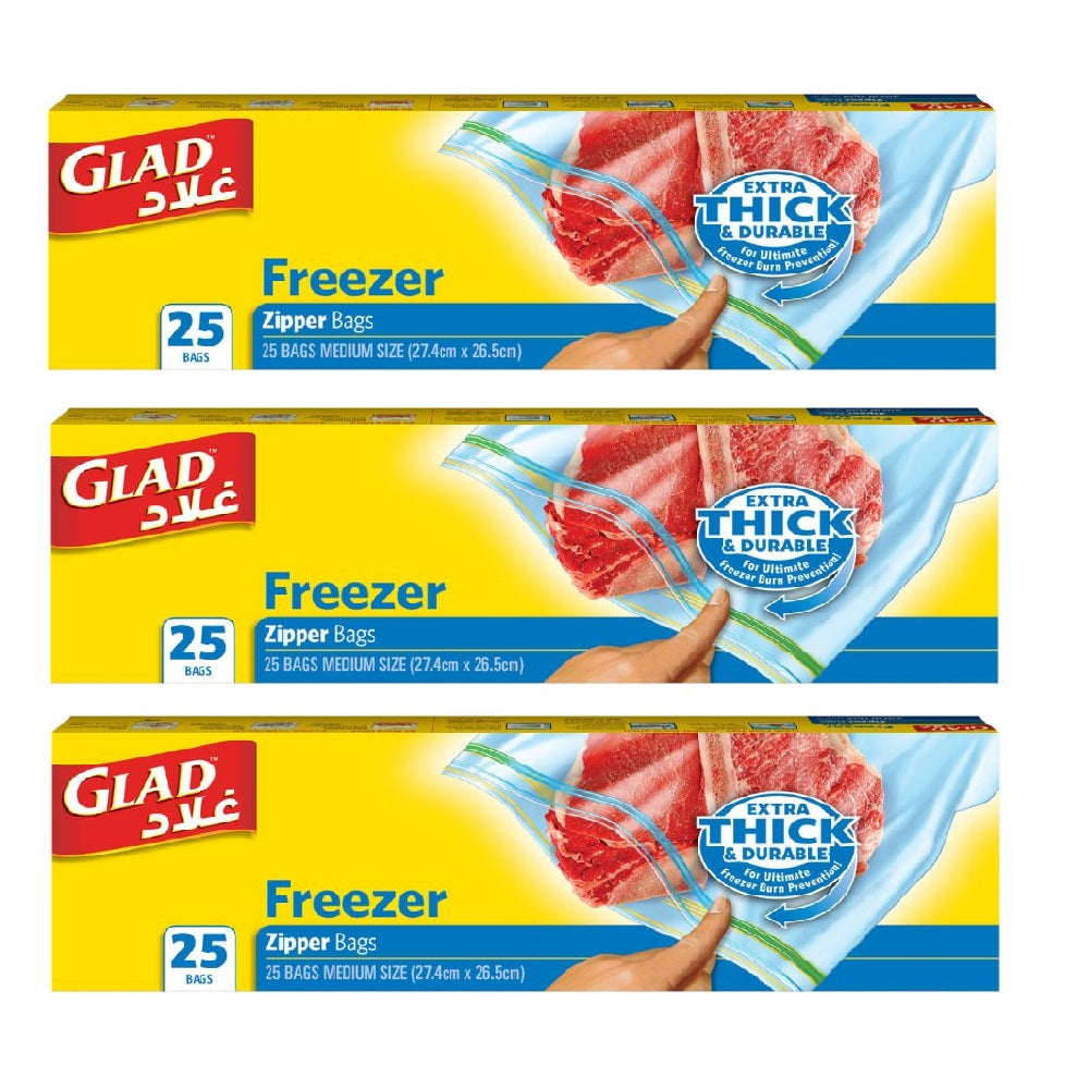 جلاد - أكياس الفريزر مقاس 27.4 سم × 26.5 سم - 25 كيس - (عبوة من 3 أكياس)