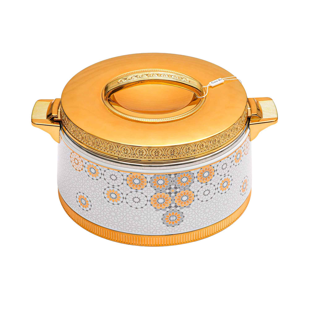 Keep your meals warm and elegantly presented with the Casa Blu HOP01045F07 4.5L Metal Food Warmer. Designed for both function and style, this premium food warmer features a high-quality metal body with intricate patterns and a luxurious gold-tone finish. The large 4.5L capacity makes it perfect for gatherings, catering, and home use. Crafted for durability and efficient heat retention, it ensures your dishes stay warm for extended periods.