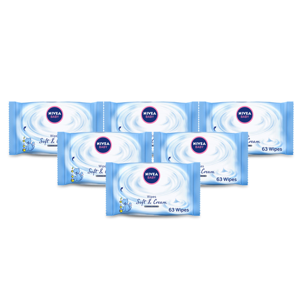 مناديل الاطفال المبللة سوفت اند كريم 63 منديل من نيفيا- 6 قطع