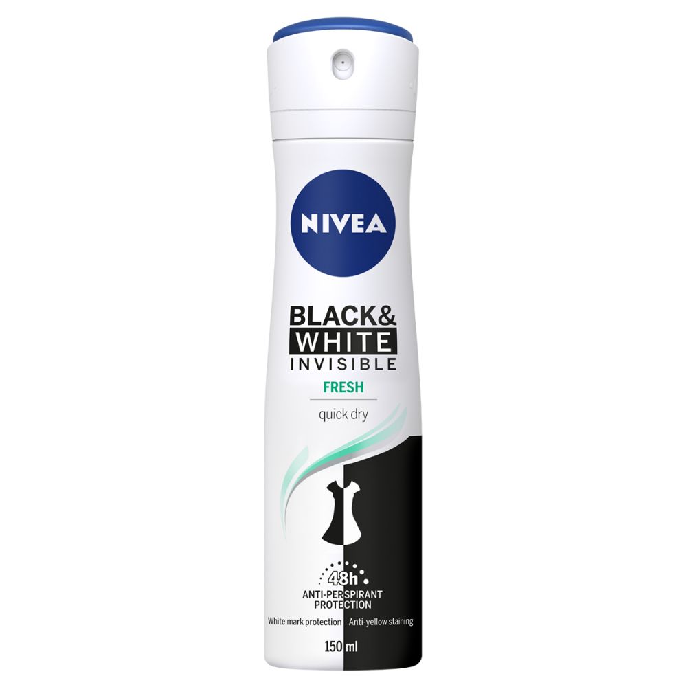 مزيل العرق غير المرئي بلاك آند وايت كلين للنساء من نيفيا هو تركيبة فريدة تحمي ملابسك من العلامات البيضاء والبقع الصفراء - الأسود يبقى أسود والأبيض يبقى أبيضًا لفترة أطول.