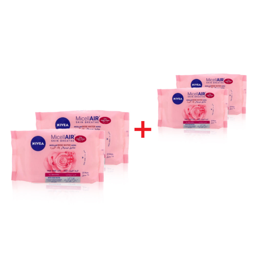 نيفيا مناديل مبللة بماء الورد 25 قطعة اشتري 2 واحصل على 2 مجاناً