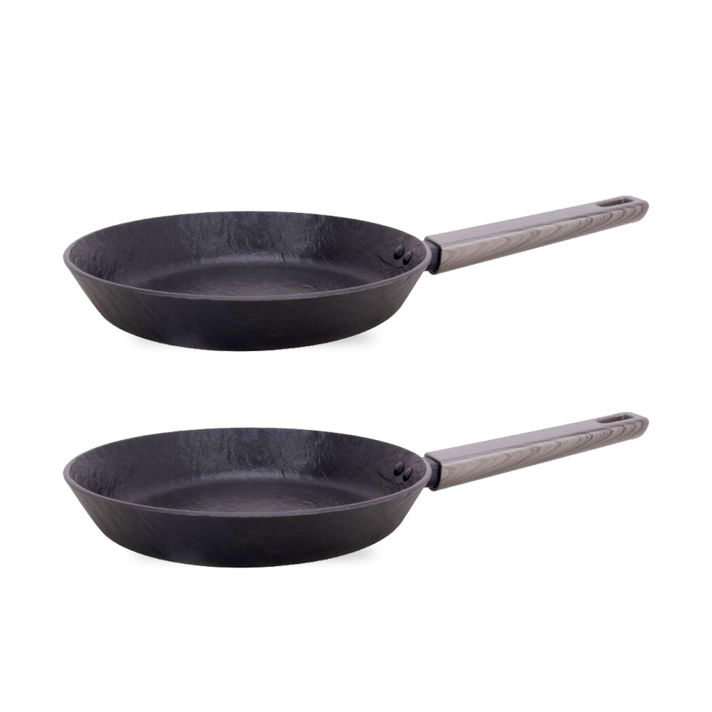 رويال بلو مقلاة روك ستون جرْبلون سي2 غير لاصقة مقاومة للخدش ألومنيوم مقلاة مستديرة مع مقبض أسود 22سم (مجموعة مكونة من 2 مقلاة)