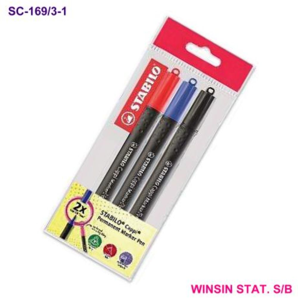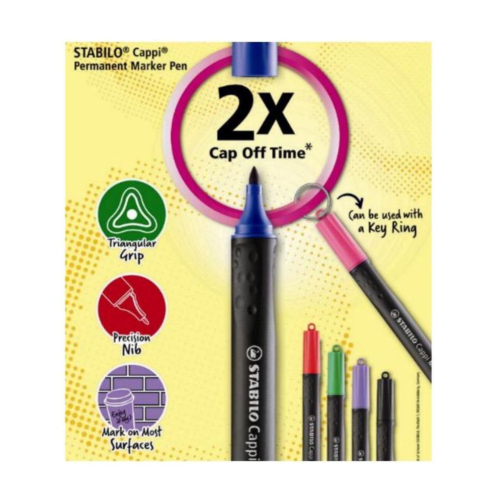 اقلام ماركر الثابتة مع غطاء مزود بحلقة للتعليق من ستابيلو عبوة من 3 اقلام- مجموعة من 4 عبوات