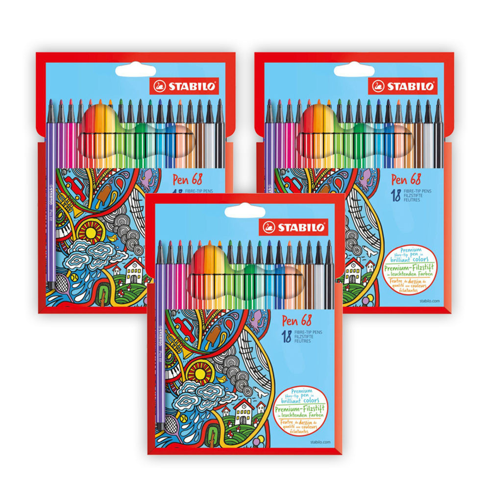 قلم ستابيلو 38 بالألياف عالية الجودة مع حلقة على الرأس -محفظة من الورق المقوى من 18 لونًا (عبوة من 3 محافظ)