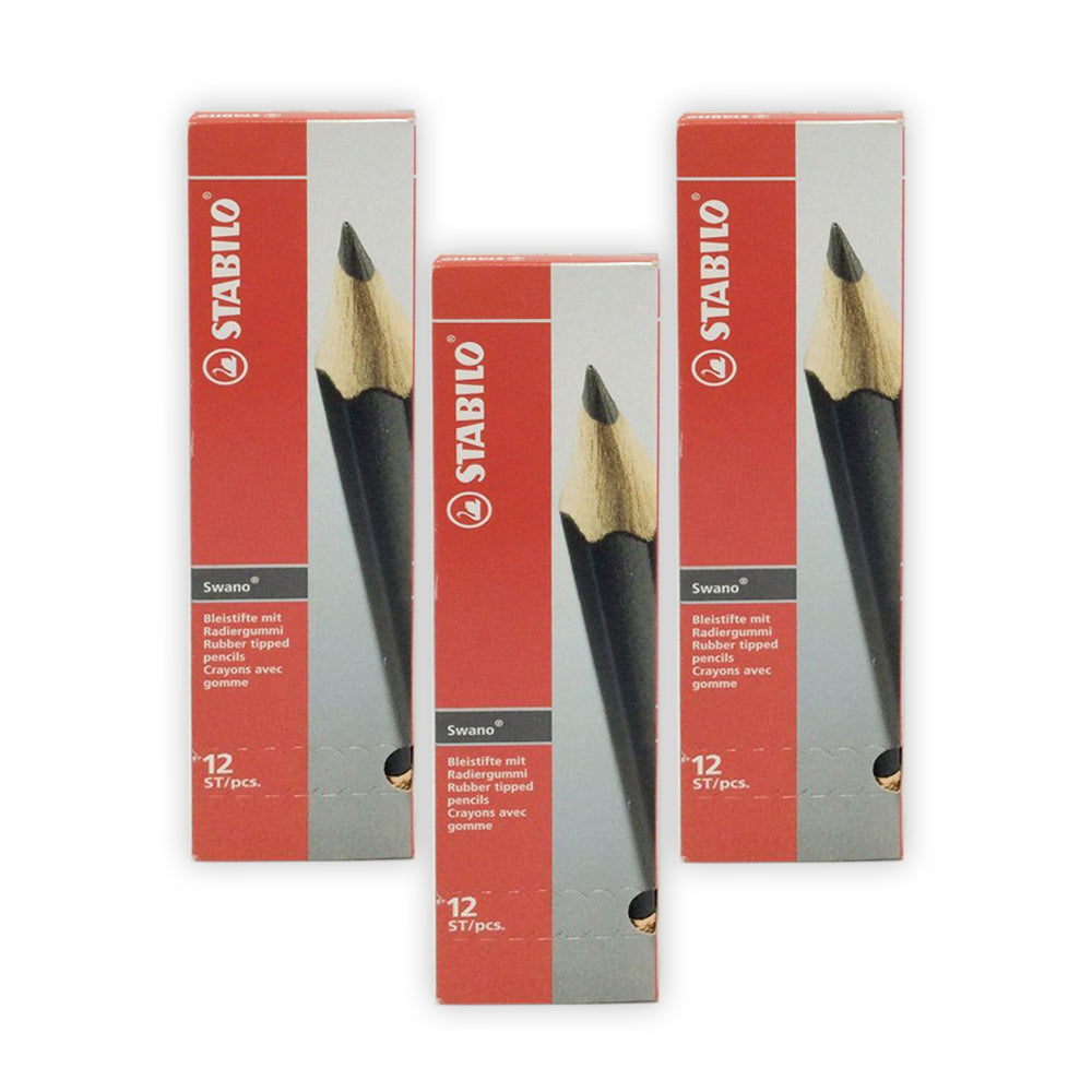 قلم رصاص ستابيلو سوانو ممحاة جرافيت - مجموعة من 12 قلم (عبوة من 3 مجموعات)