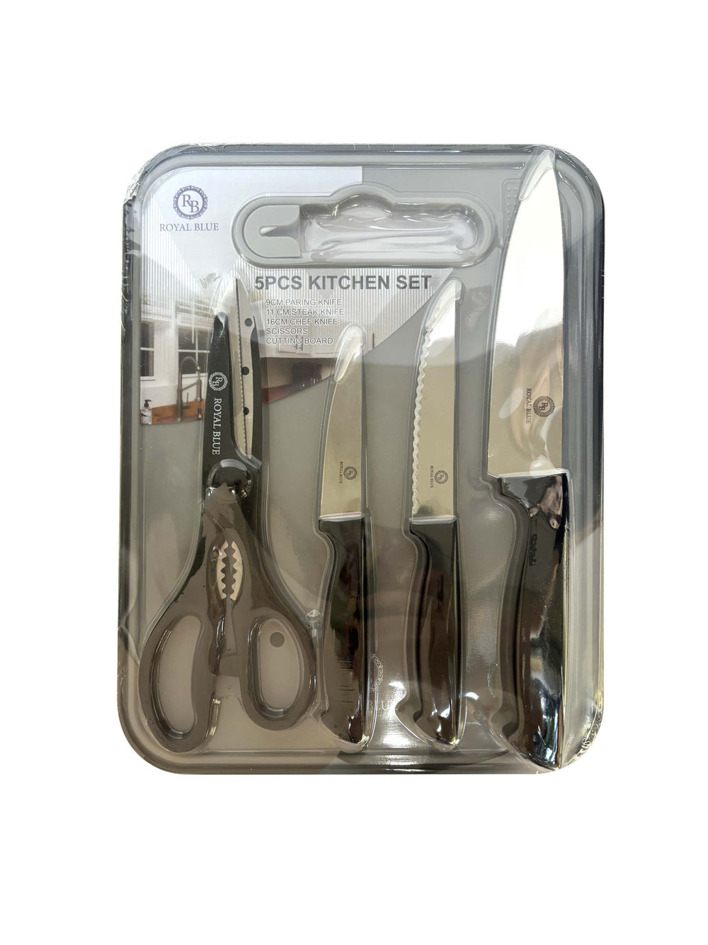 YJS235 طقم مطبخ 5 قطع أزرق ملكي - 4 قطع سكين ولوح تقطيع