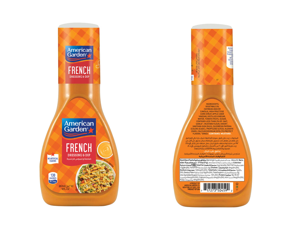 American Garden French dressing adds a unique taste to your salads. Made with a combination of vinegar, tomatoes and our best quality spices, our American Garden French dressing will suit