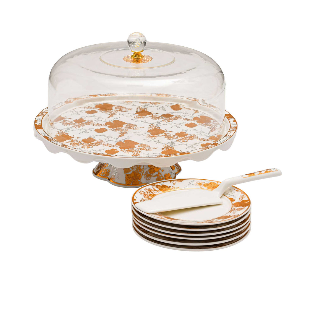 - Set Includes: 1 Cake Stand, 1 Dome Cover, 6 Six-Inch Plates, 1 Server