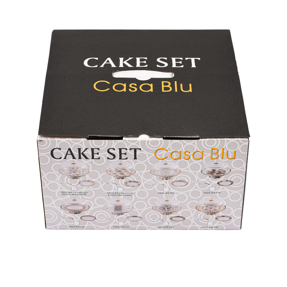 Casa Blu Modern Geometric Cake Stand with Dome and Serving Plates (8pc Set)-Gold accents
