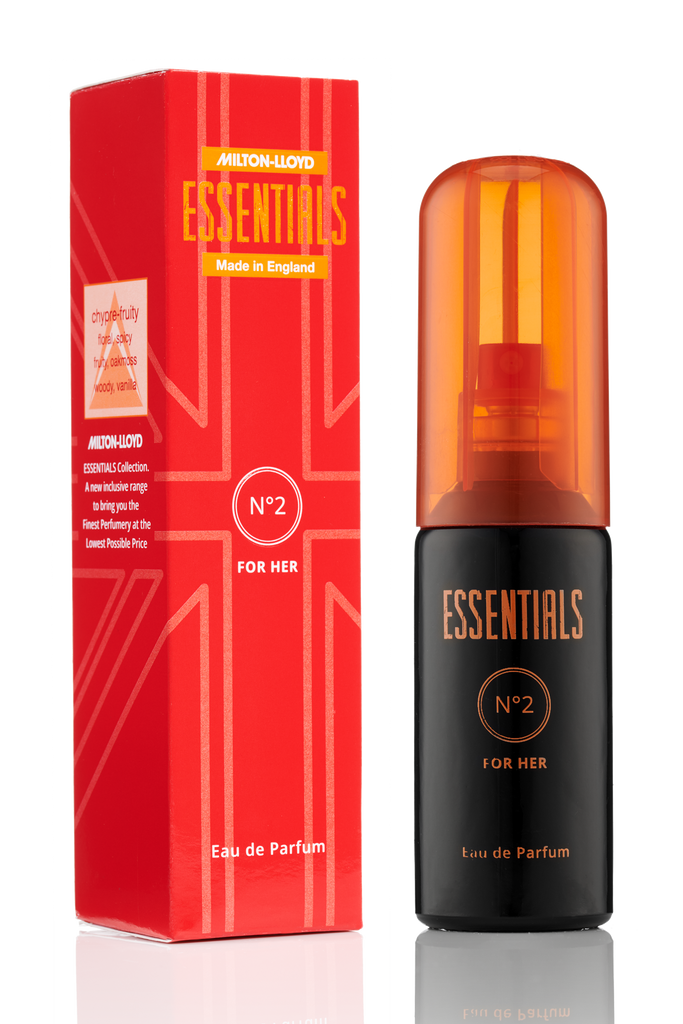 LUXURY FRAGRANCE – Since 1975, Milton-Lloyd have earned an unshakeable reputation for award-winning, luxury fragrances without the luxury price tag DISTINCTIVE, ELEGANT AND CRISP - top notes of bergamot, peony and freesia overlay a warm heart of red fruits, violets, jasmine and carnation, with rich, woody chypre base notes of orris, sandalwood and vetiver LONG LASTING – Essentials No 2 comes with a 6 hour minimum guarantee. It is the luxury oils, blended at high concentrations that promises outstanding quality and long-lasting performance THE ESSENTIALS COLLECTION - a revolutionary collection offering exceptional quality and performance at astonishingly affordable prices GENUINE MILTON-LLOYD PRODUCT – Milton-Lloyd works with the world’s leading perfumers, using the finest oils, blended at high concentrations to create sophisticated, long lasting, luxury fragrances. Their commitment to prioritising perfumery over packaging and advertising is what gives you incredible quality at affordable prices. Every year, millions of people fall in love with Milton-Lloyd fragrances