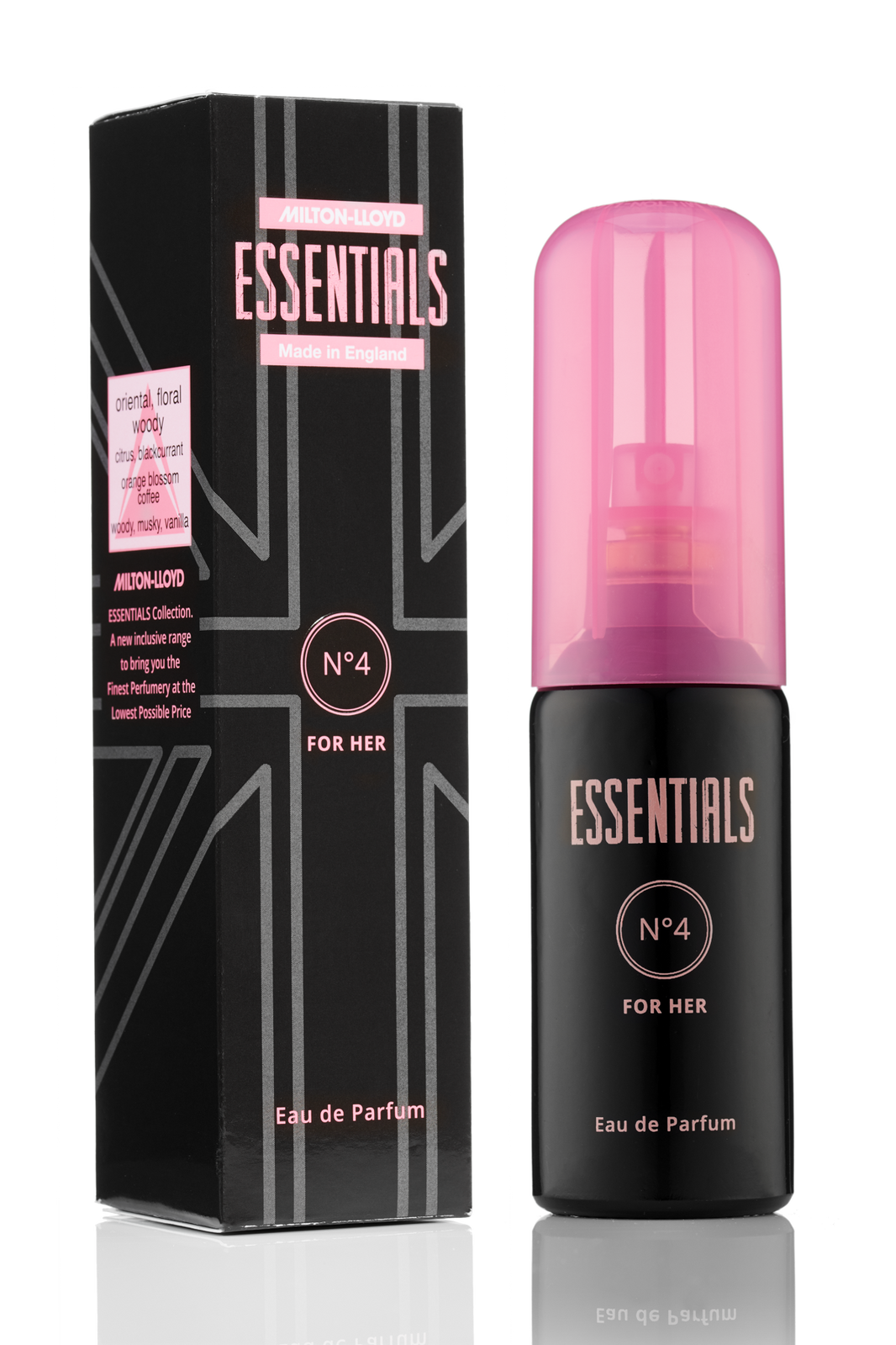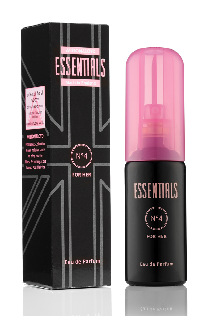 LUXURY FRAGRANCE – Since 1975, Milton-Lloyd have earned an unshakeable reputation for award-winning, luxury fragrances without the luxury price tag SPARKLING FEMININE AND SENSUAL - Citrus, blackcurrant and orange flower top notes overlay an elegant white floral, black pepper and coffee heart, enhanced with warm, sweet base notes of cedar, patchouli and vanilla LONG LASTING – Essentials No 4 comes with a 6 hour minimum guarantee. It is the luxury oils, blended at high concentrations that promises outstanding quality and long-lasting performanceTHE ESSENTIALS COLLECTION - a revolutionary collection offering exceptional quality and performance at astonishingly affordable prices GENUINE MILTON-LLOYD PRODUCT – Milton-Lloyd works with the world’s leading perfumers, using the finest oils, blended at high concentrations to create sophisticated, long lasting, luxury fragrances. Their commitment to prioritising perfumery over packaging and advertising is what gives you incredible quality at affordable prices. Every year, millions of people fall in love with Milton-Lloyd fragrances