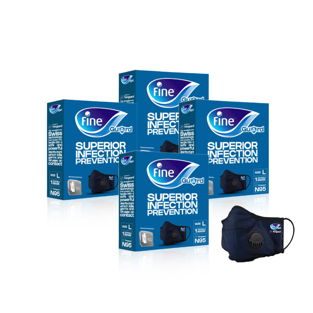 Ordinary masks filter dust and dirt, but they can fail in filtering out small pathogens like bacteria and viruses. Fine Guard provides you and your family not only with N95 grade filtration, but has on-top the patented and certified LIVINGUARD® Technology that actually sterilizes the air that passes through the mask, killing bacteria and viruses that can slip through. This means the air you are breathing through Fine Guard is as "clean as Swiss air"!