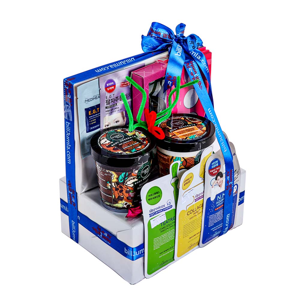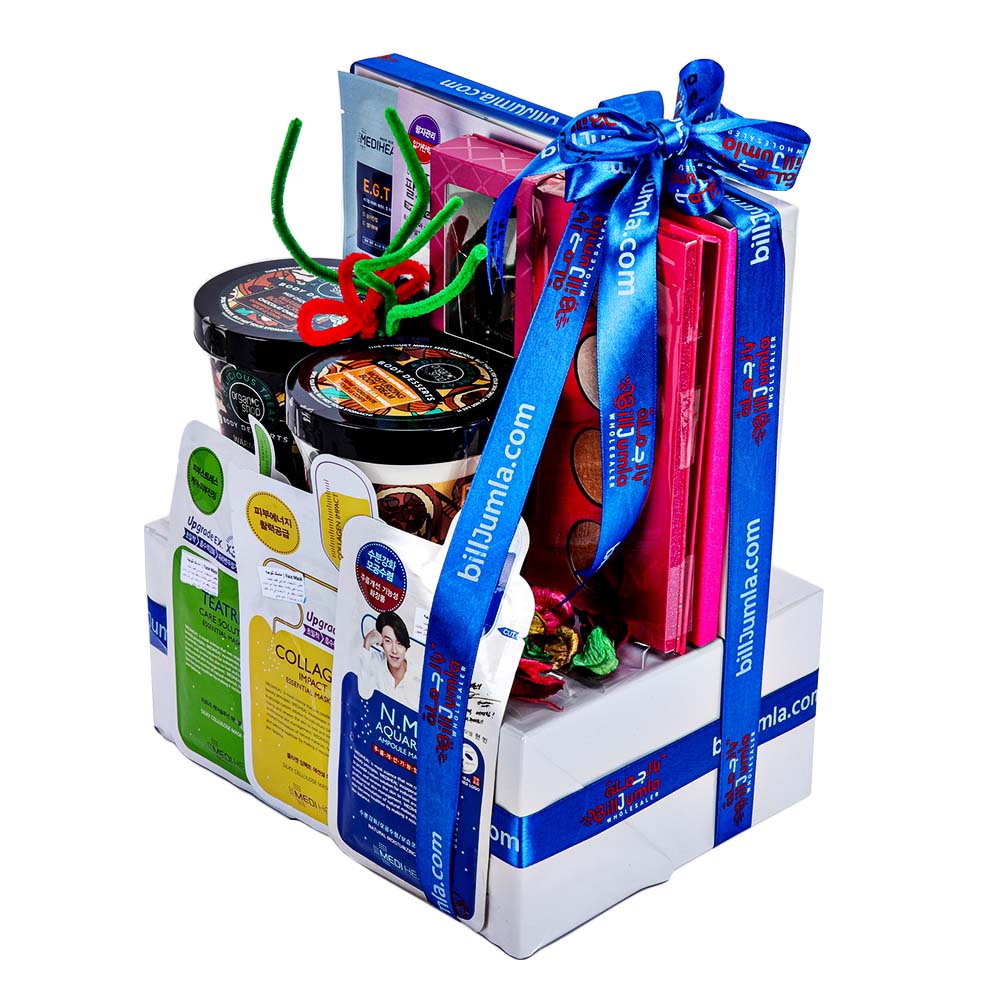 The Hamper contains the following: Karisma Contouring Brush Karisma Light up Your Life Illuminating Pallette Mediheal aquaring ampoule mask Mediheal tea tree care solution essential mask Mediheal collagen impact essential