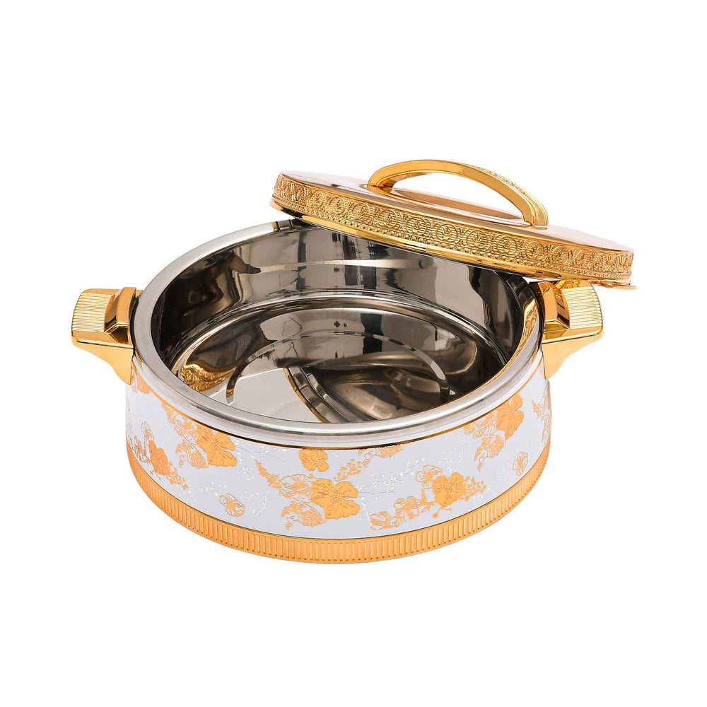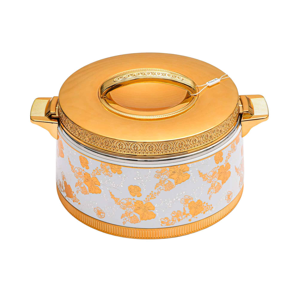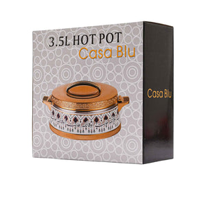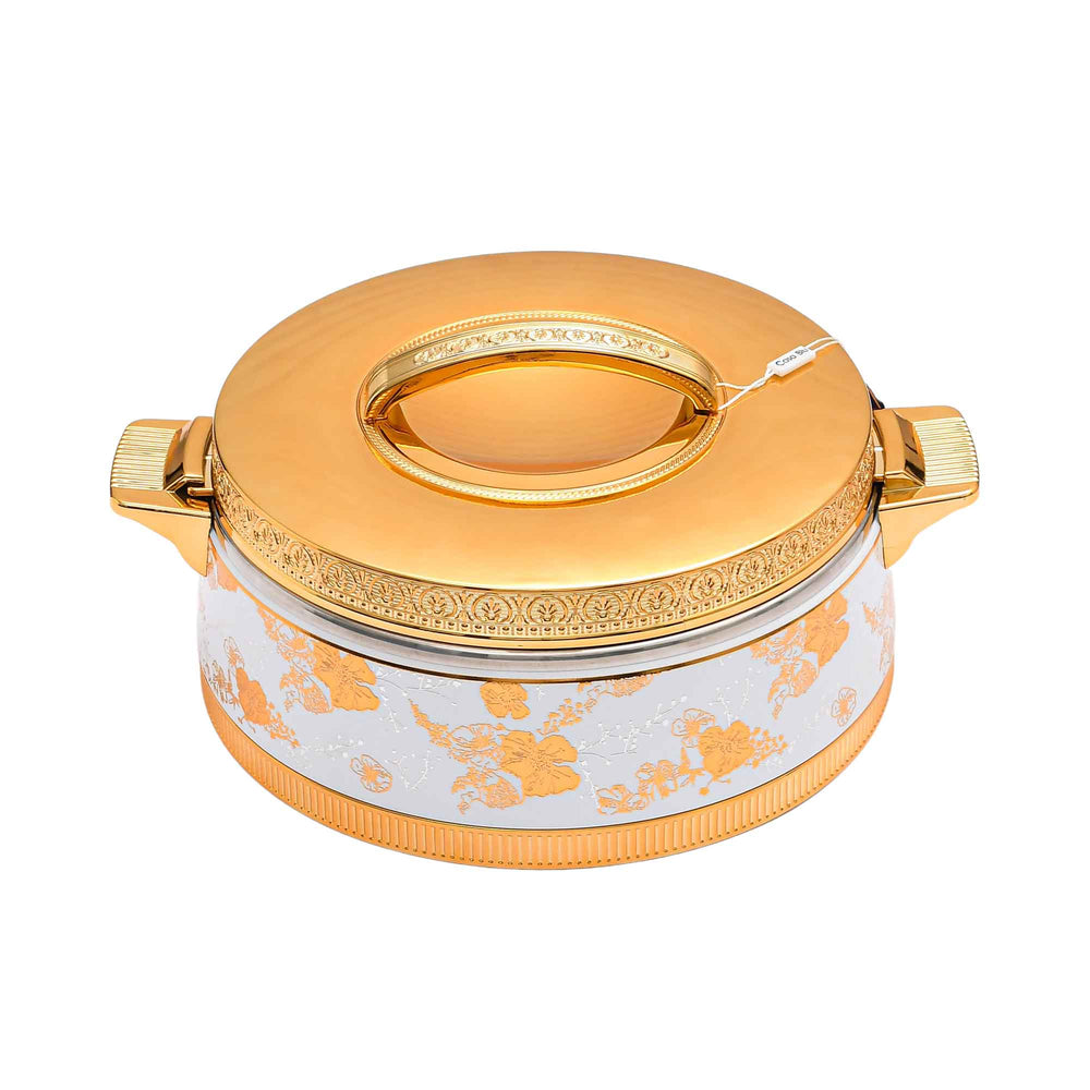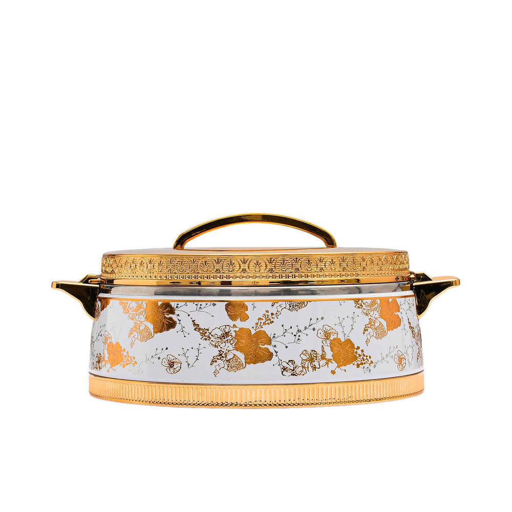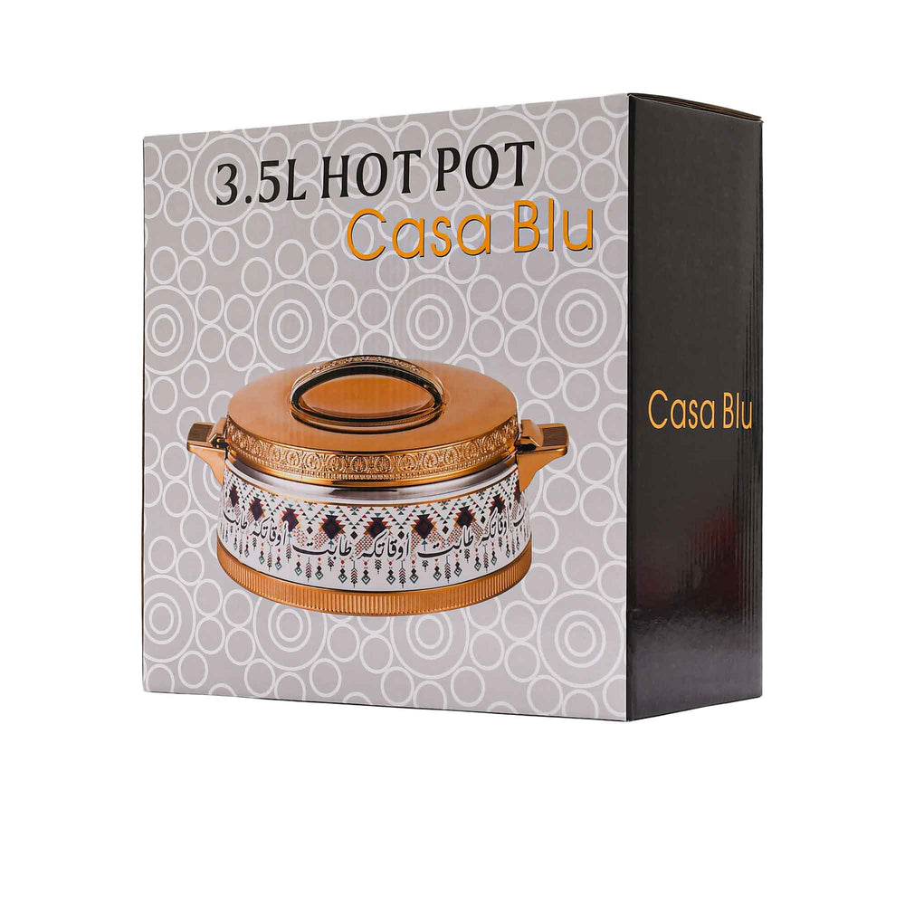 Keep your food warm and present it beautifully with the Casa Blu 3.5L Metal Food Warmer (HOP01035F02). This elegant piece features a striking gold and silver mixed design with traditional Arabic calligraphy, making it perfect for gatherings, parties, and everyday use. Its insulated construction helps maintain food temperature for extended periods.