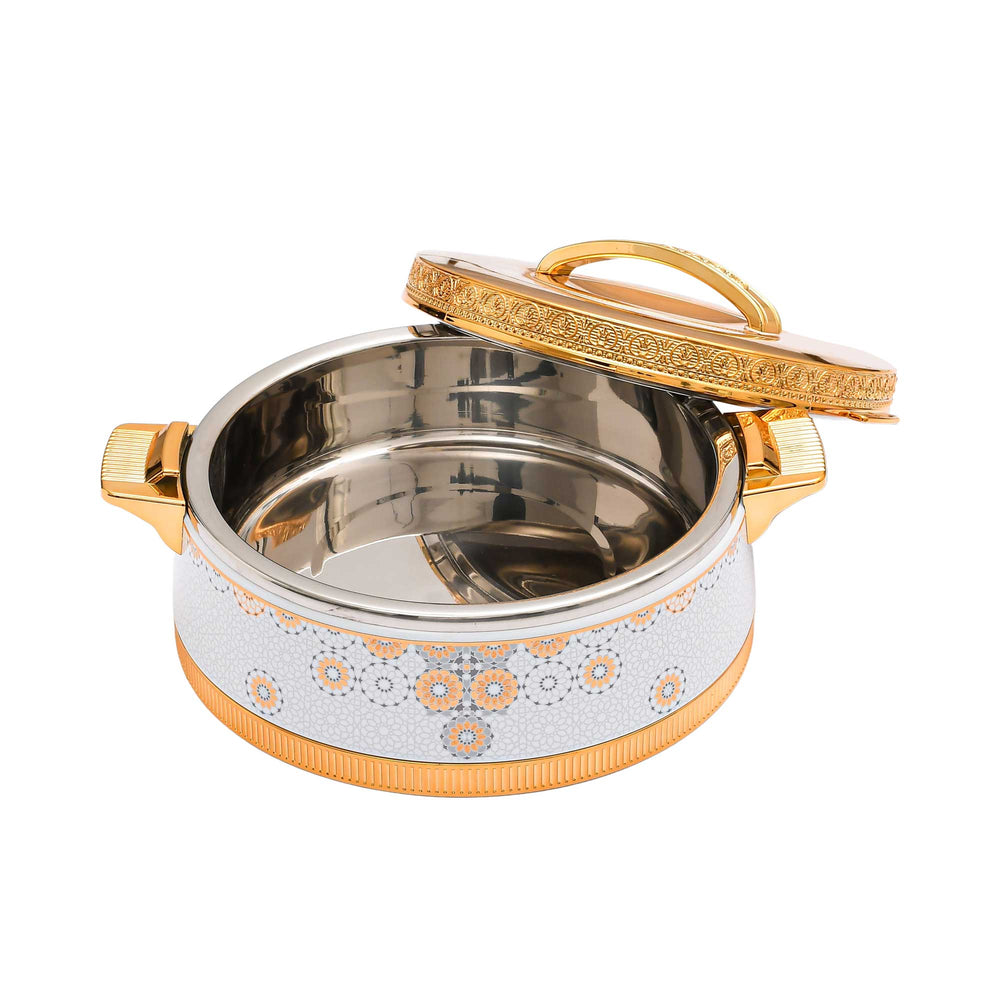 Keep your meals warm and elegantly presented with the Casa Blu HOP01045F07 4.5L Metal Food Warmer. Designed for both function and style, this premium food warmer features a high-quality metal body with intricate patterns and a luxurious gold-tone finish. The large 4.5L capacity makes it perfect for gatherings, catering, and home use. Crafted for durability and efficient heat retention, it ensures your dishes stay warm for extended periods.