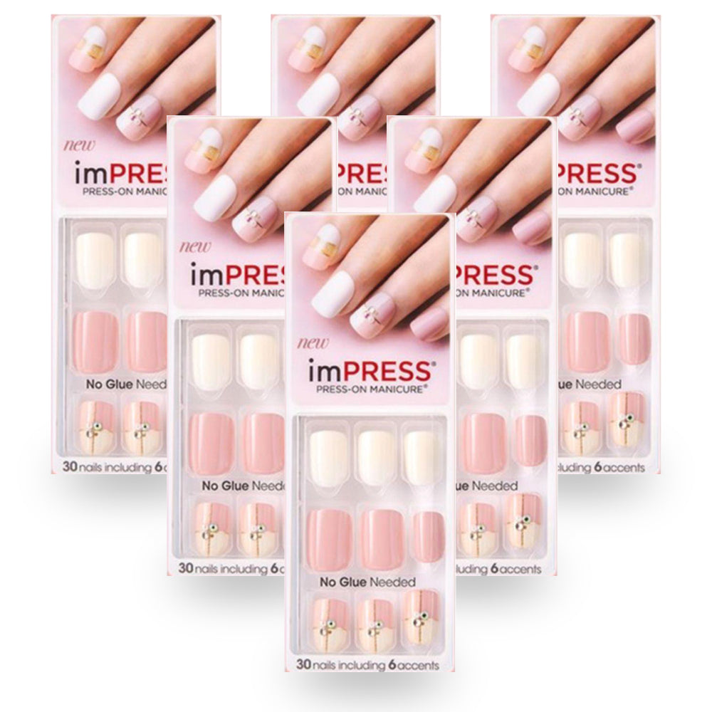 KISS imPRESS Press-on Manicure one-step gel nails take minutes to apply! From solid colors to a colorful mix to matte and chrome finishes–adorned with glitter, 3D crystals, colored stones, and more–everyone’s favorite false nails are always on trend!