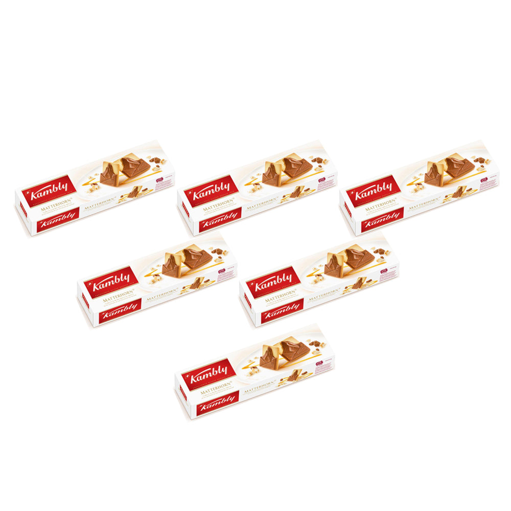 Connoisseurs will reach the pinnacle of good taste with these crunchy and light butter biscuits. The delicious Matterhorn with fine Swiss milk chocolate and exquisite honey nougat slivers is dedicated