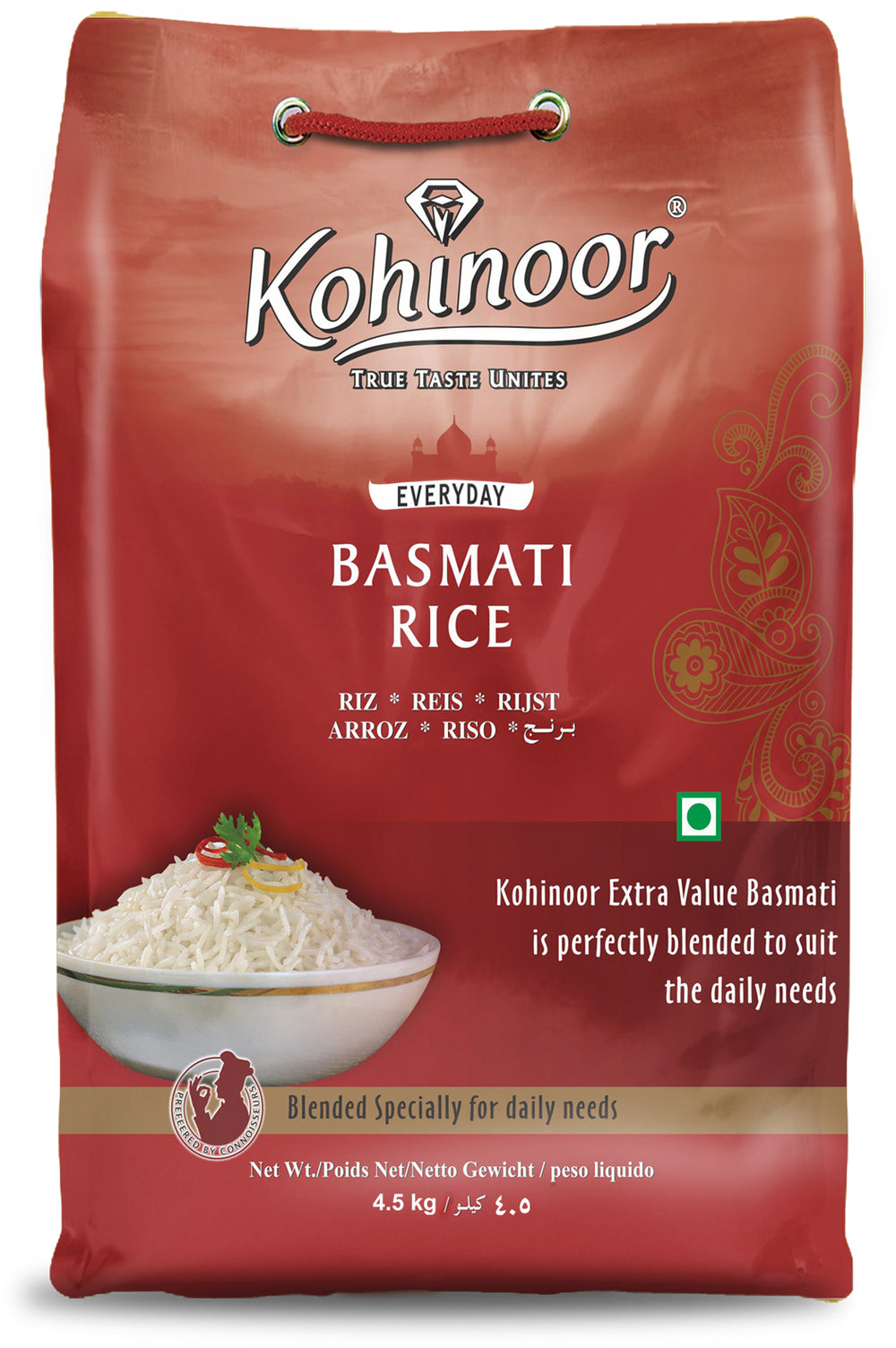 Product Summary:- Brand: Kohinoor Product Type: Basmati Rice Weight: 4.5kg Origin: India Detailed Information:- Kohinoor, symbol of India's finest Basmati Rice, presents Basmati which is meant to
