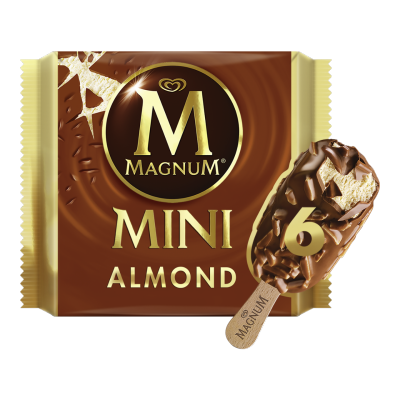 - Velvety smooth vanilla ice cream covered in cracking Magnum milk chocolate and almond pieces.