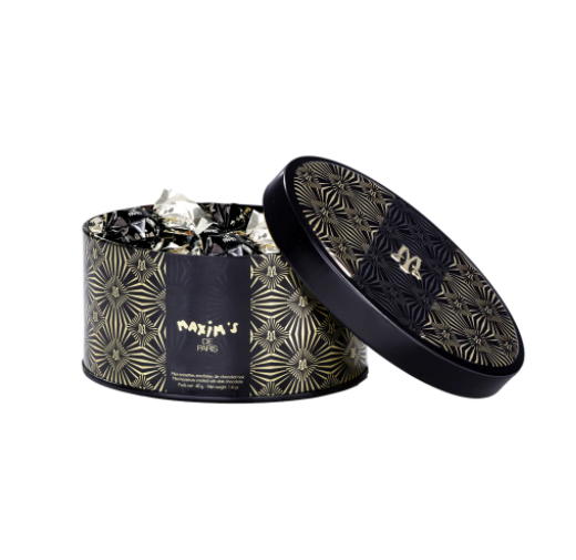 An irresistible tin with 16 whole hazelnuts covered with dark chocolate.
