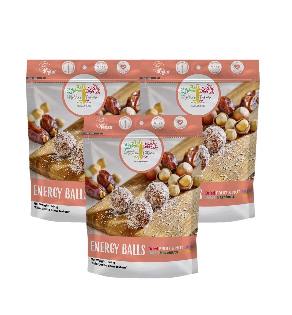 Mother Nature Energy Balls Dates, Hazelnut & Coconut 144g - (Pack of 3)
