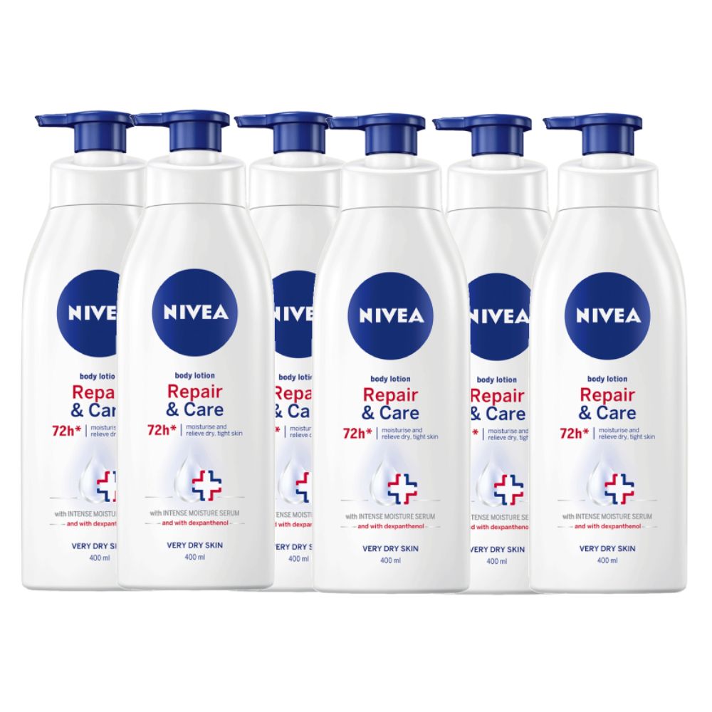 The NIVEA Repair and Care body lotion was especially developed with a dermatologist. The highly effective formula works in two ways: 1.It is infused with the unique NIVEA DEEP MOISTURE SERUM & soothing Dexpanthenol and strengthens your skin barrier to prevent moisture loss. 2. Used regularly it gives you a comfortable skin feeling, relieving it from tightness for 72h. It soothes dry and rough skin and helps to calm irritated areas- after just 1 application.