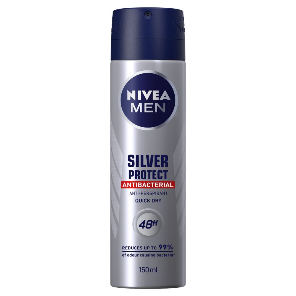 NIVEA MEN Silver Protect Anti-Perspirant Deodorant fights the bacteria that causes body odour for effective, long-lasting protection. The innovative formula, containing silver ions, reduces up to 99% of odour-causing bacteria.