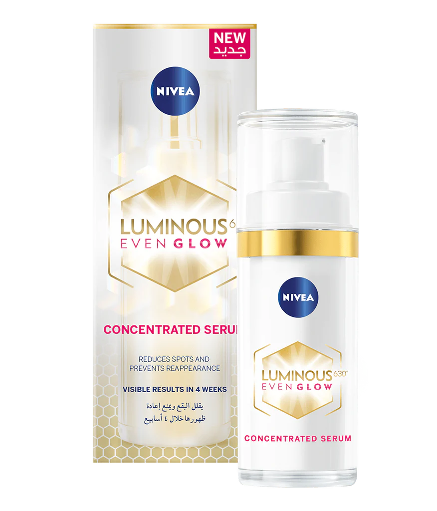 The serum combines the breakthrough ingredient LUMINOUS630 in its highest concentration with Vitamin E and cell-activating Hyaluronic Acid*. It delivers NIVEA’s highest efficacy in treating dark spots with a dual-action – it reduces dark spots while preventing their reappearance with regular usage. For even and LUMINOUS skin, with visible results in 4 weeks.