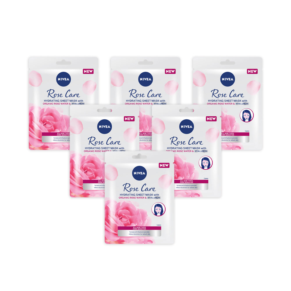 Nivea Rose Care Rose Water & Hyaluron Sheet Mask (Pack of 6)