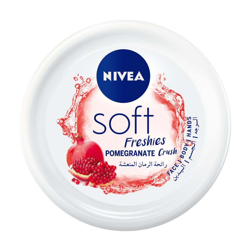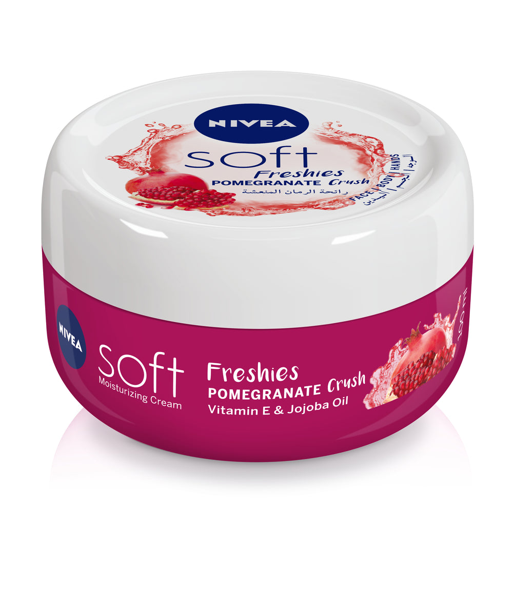 NIVEA Soft Freshies Pomegranate Crush is an intensive moisturizing cream for everyday use. Enjoy the delicate moisturizing cream with fragrance blend of pomegranate & sweet floral notes. Use instructions: Apply daily on face, body and hands. Gently massage into your skin. Store in a cool dry place.