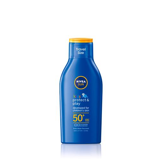 NIVEA SUN Kids Protect Care Sun Lotion SPF 50+ immediately protects your kids against sunburn and long-term skin damage caused by sunlight, offering highly effective 5* UVA and UVB protection.