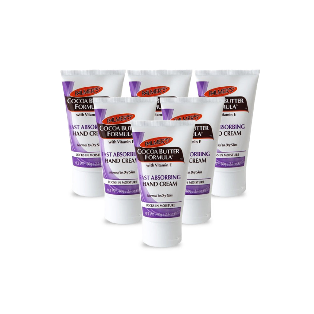 Palmers Cocoa Butter Formula With Vitamin E Fast Absorbing Hand Cream 60g A light non greasy formula enriched with palmer's cocoa butter with Vitamin E to quickly absorb into skin, providing relieving moisture to dry uncomfortable hands. This Cocoa Butter formula delivers hands feeling soft, supply and smooth, and restored and nourished.