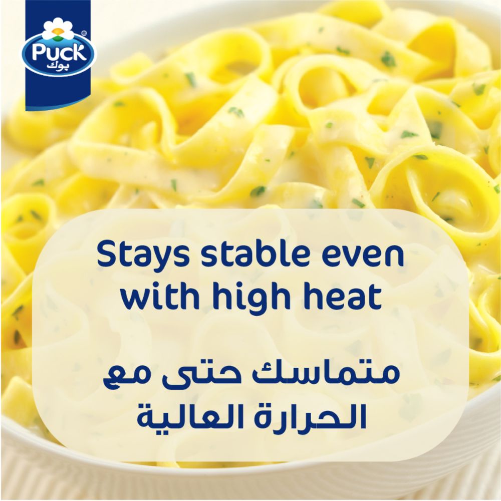 With its unique formulation of ingredients preventing it from curdling, Puck Cooking Cream is perfect for all dishes prepared in high temperatures. It will surely add amazing richness to your favorite vegetable soups, enhance traditional meat gravies or provide much-wanted creaminess to the Italian-inspired pasta sauces.